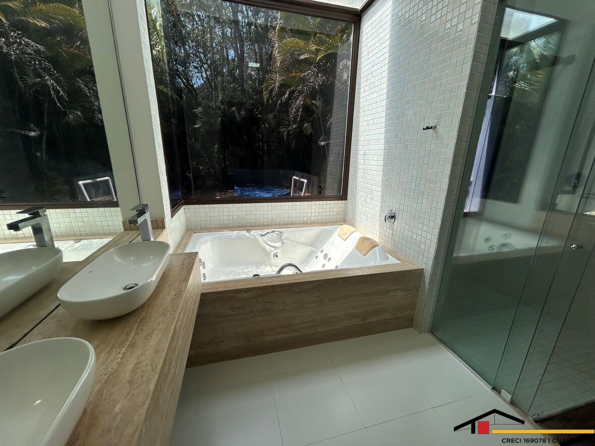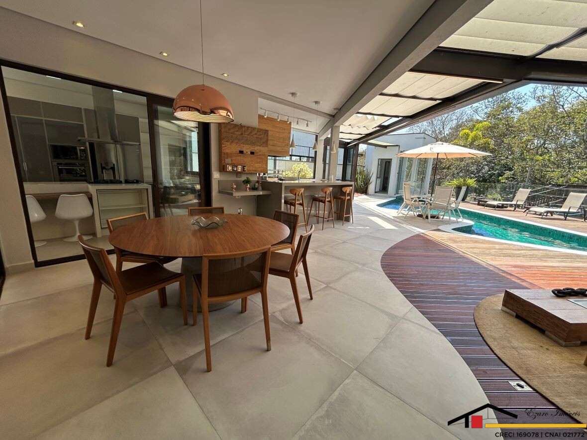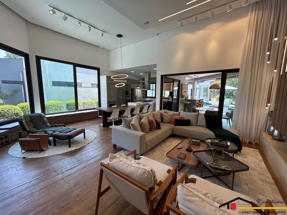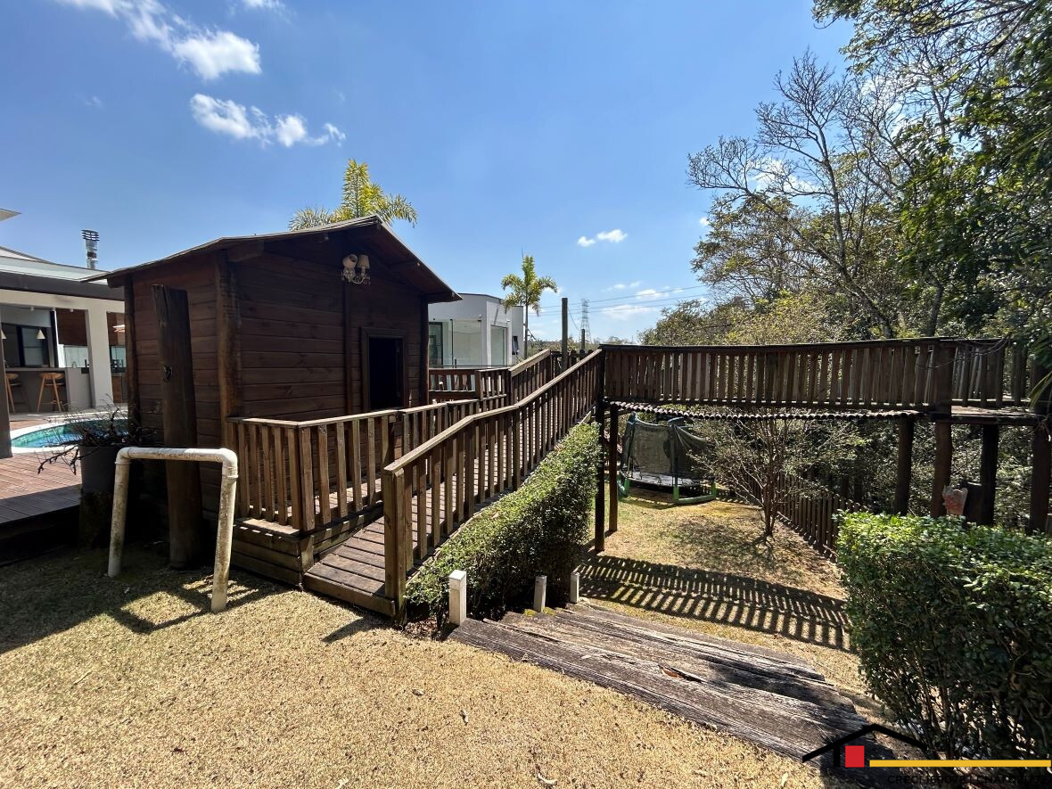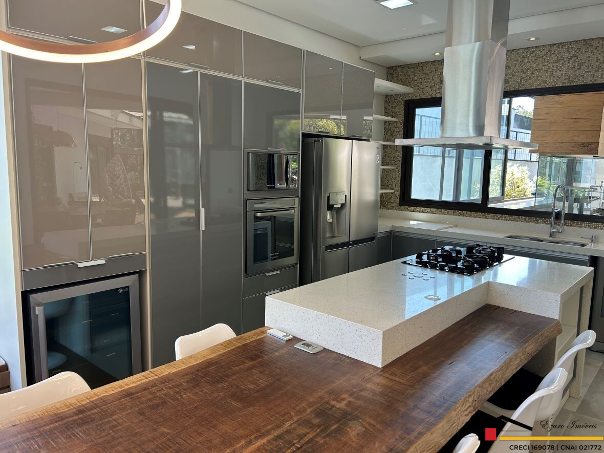 Casa Térrea, totalmente mobilhada, venda de porteira fechada. 4 suítes, a máster com closet e banheira, os ambientes são totalmente integrados, com área de lazer e áre gourmet. Sala de estar com lareira a gás, sala de jantar, sala de tv, belíssima cozinha com planejados, integrados a área gormet, e área de lazer, com sauna, piscina com aquecimento, sauna, playground para crianças, fantástico fundos de reserva, árvores frutíferas e banheiro externo. Garagem coberta para 5 veículos. Veja o vídeo completo.