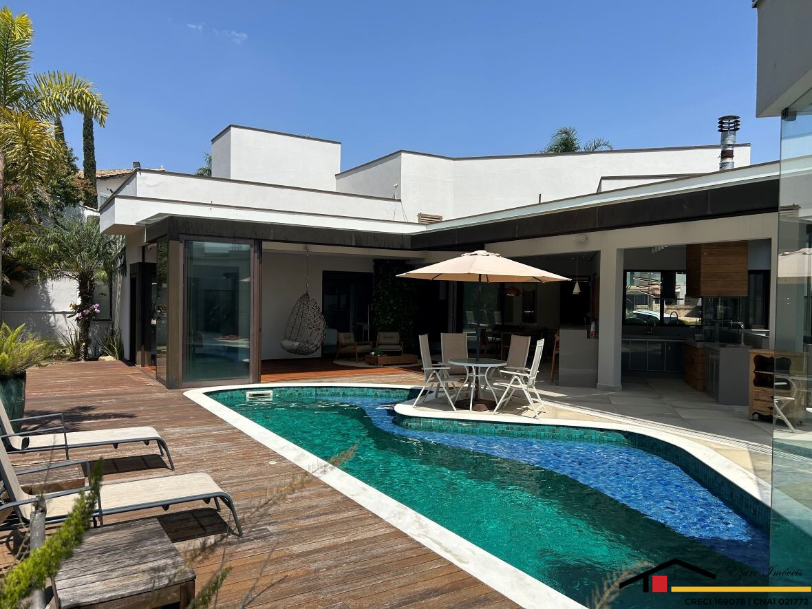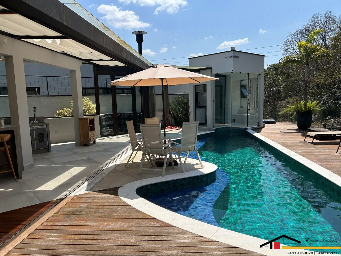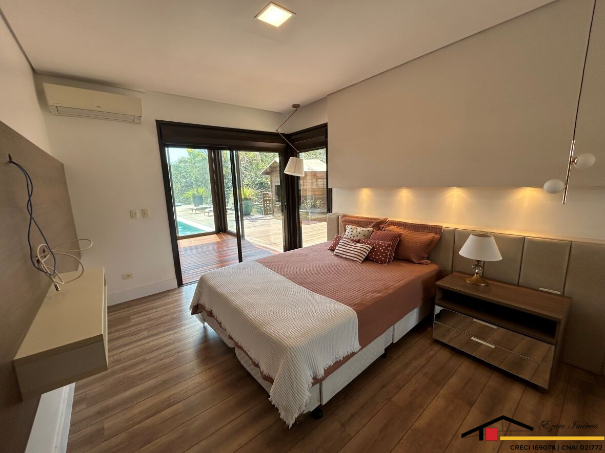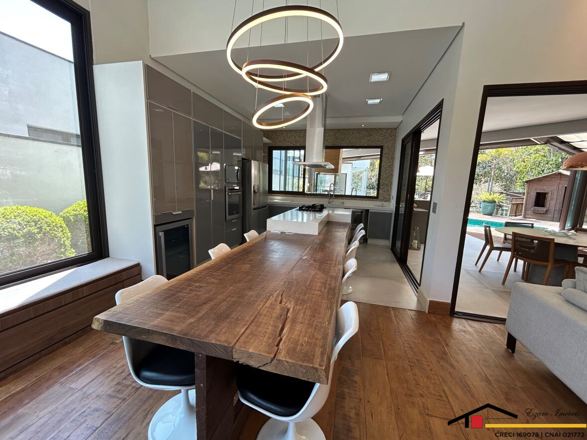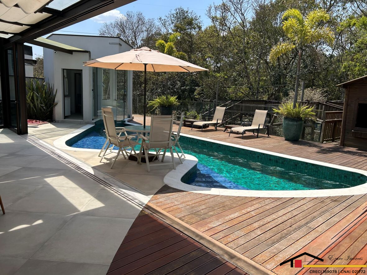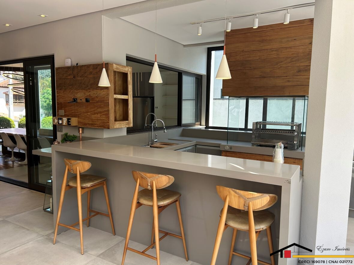 Casa Térrea, totalmente mobilhada, venda de porteira fechada. 4 suítes, a máster com closet e banheira, os ambientes são totalmente integrados, com área de lazer e áre gourmet. Sala de estar com lareira a gás, sala de jantar, sala de tv, belíssima cozinha com planejados, integrados a área gormet, e área de lazer, com sauna, piscina com aquecimento, sauna, playground para crianças, fantástico fundos de reserva, árvores frutíferas e banheiro externo. Garagem coberta para 5 veículos. Veja o vídeo completo.