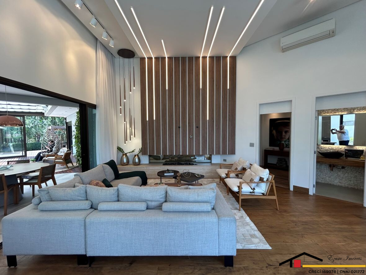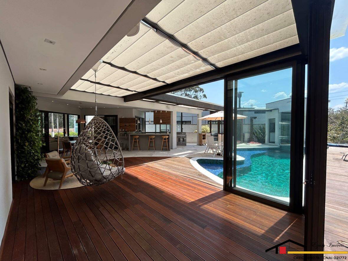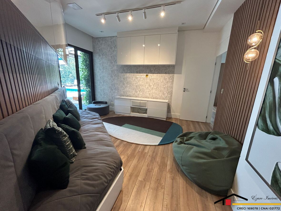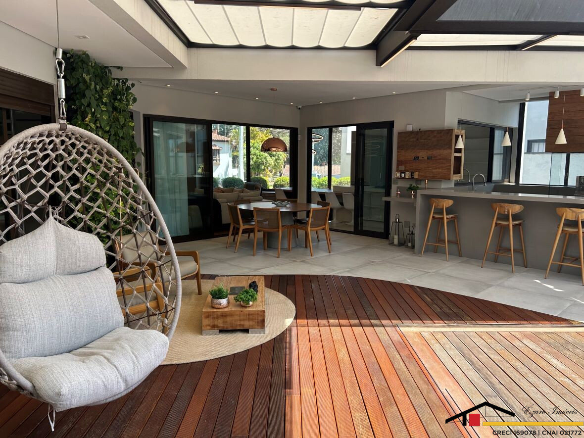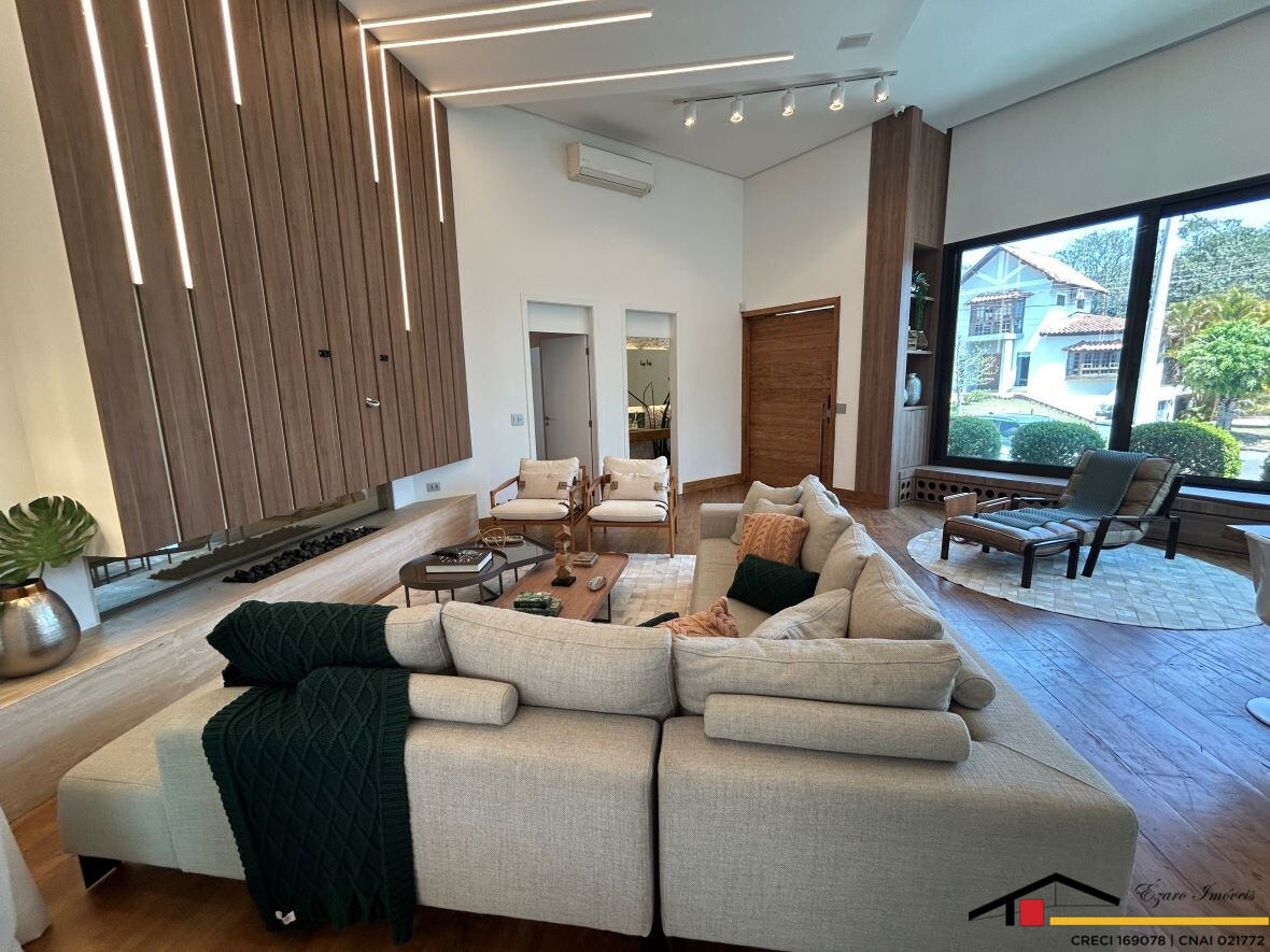 Casa Térrea, totalmente mobilhada, venda de porteira fechada. 4 suítes, a máster com closet e banheira, os ambientes são totalmente integrados, com área de lazer e áre gourmet. Sala de estar com lareira a gás, sala de jantar, sala de tv, belíssima cozinha com planejados, integrados a área gormet, e área de lazer, com sauna, piscina com aquecimento, sauna, playground para crianças, fantástico fundos de reserva, árvores frutíferas e banheiro externo. Garagem coberta para 5 veículos. Veja o vídeo completo.