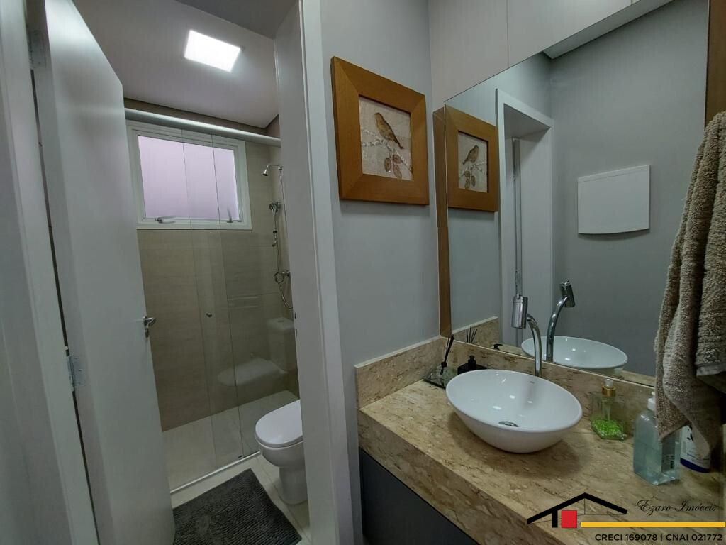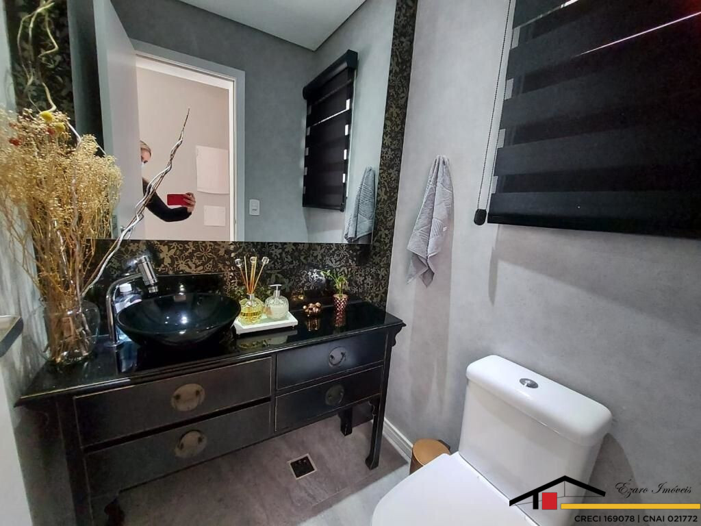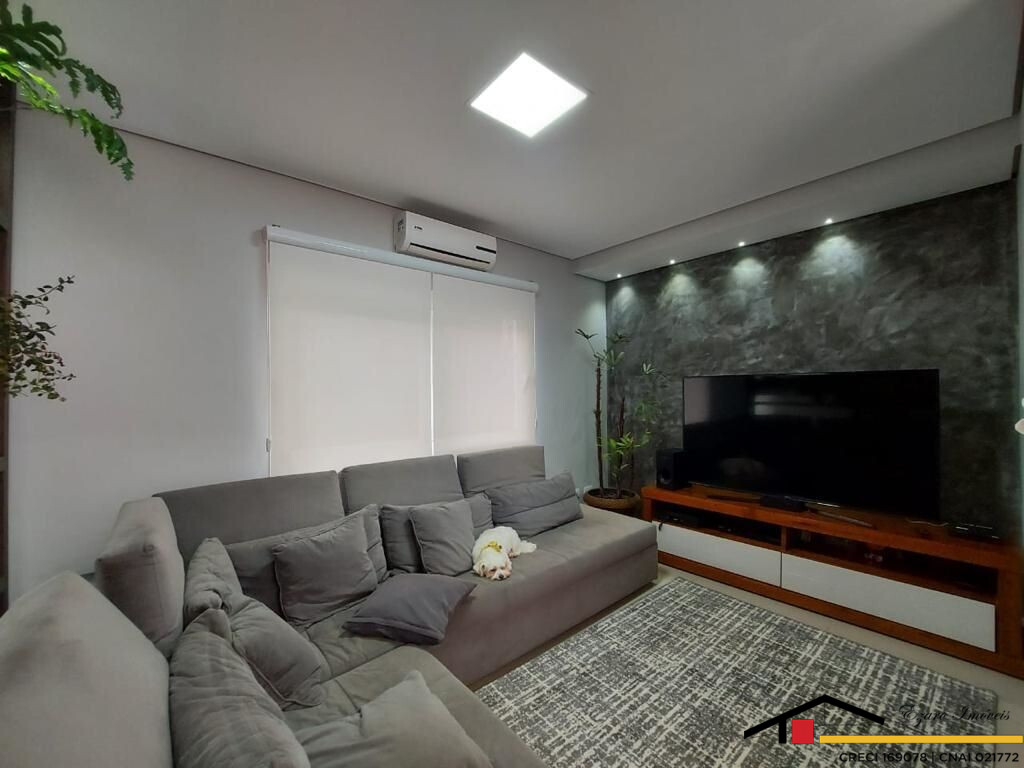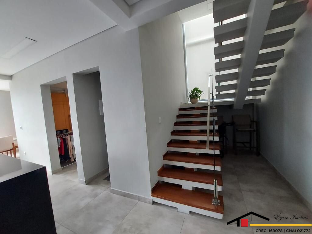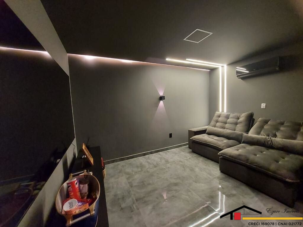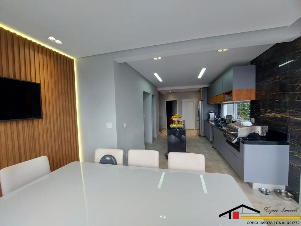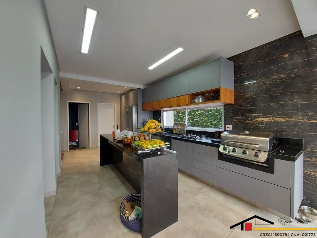 Sobrado localizado parte alta do Condomínio: 3 Qtos todos suítes, a máster com closet, hidromassagem, sacada com vista panorâmica, todos os quartos climatizados- Sala de estar com pé direito duplo, sala de tv climatizada, escritório-sala de jantar- cozinha com planejados. Área de lazer integrada a Área gourmet com, Sala privativa de TV, quarto, banheiro, piscina, sauna seca cozinha, churrasqueira elétrica. Garagem para 4 veículos, sendo 2 duas vagas cobertas.